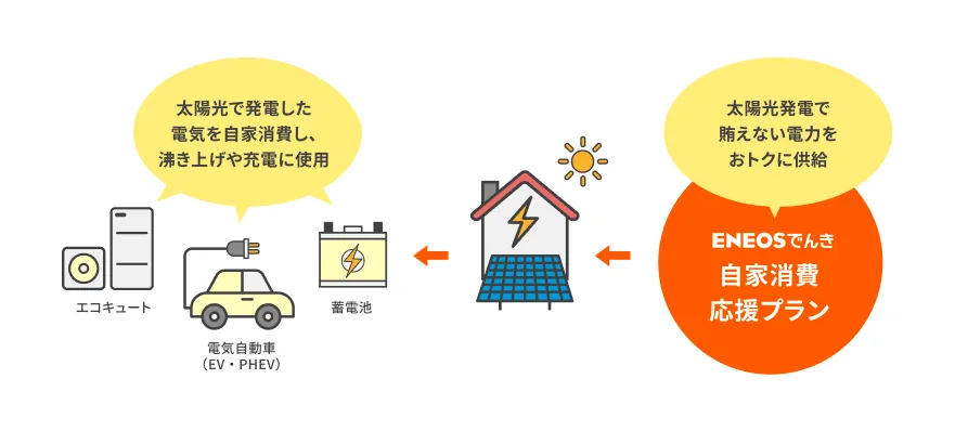 「ハウスマイルe」サービスのお申し込みと合わせてENEOSでんき「自家消費応援プラン」にお申し込みいただく※と自家消費応援プラン基本料金が1年間無料に!