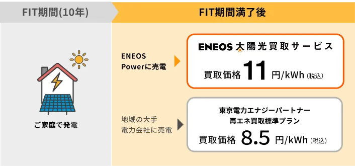 | 卒FIT買取プラン | 再エネ買取標準プラン | ENEOS太陽光買取サービス | |