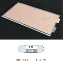セパレータと外装フィルムで正極と負極を完全分離。内部ショートを起こさない設計。